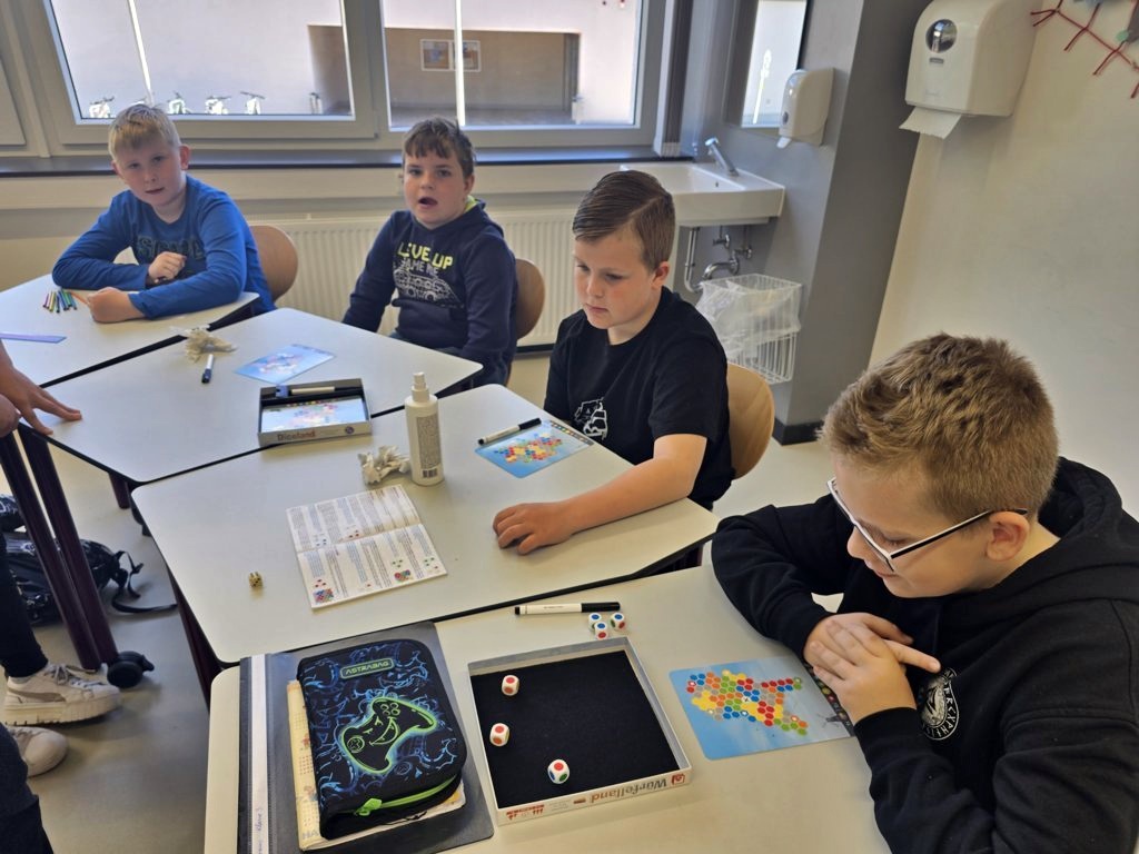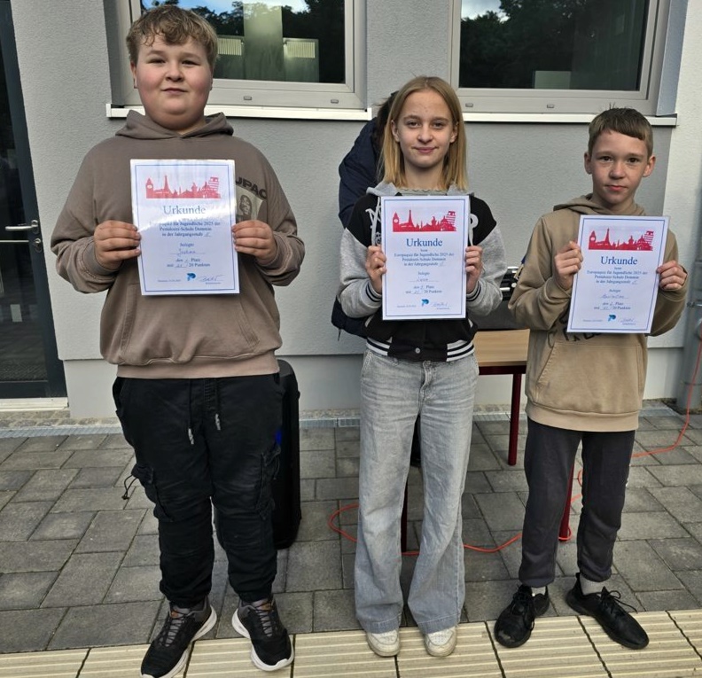 Der diesjährige Europaprojekttag stand unter dem Motto „Europa vielfältig entdecken“. Frau Garling hatte diesen Tag wieder organisiert und vorbereitet. Zu Beginn stellten alle Schülerinnen und Schüler das EU-Logo als Gemeinschaftsbild dar. Eröffnet wurde dann der Projekttag mit der Europahymne und dem Hissen der Europaflagge. Anschließend wurden die Sieger des Europäischen Wettbewerbs und die Europakenner ausgezeichnet.