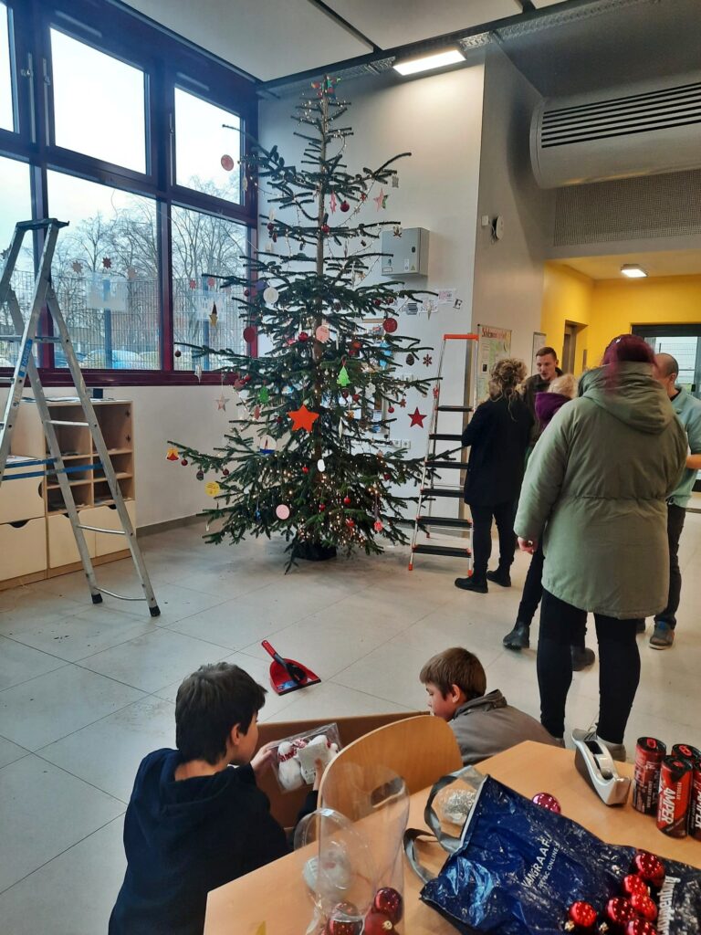 In allen Klassen wurde fleißig gebastelt, geklebt, gemalt und gestaltet. Entstanden sind viele kreative und bunte Anhänger, Sterne, Kugeln und kleine Kunstwerke, die nun unseren Schul-Tannenbaum zu etwas ganz Besonderem machen.