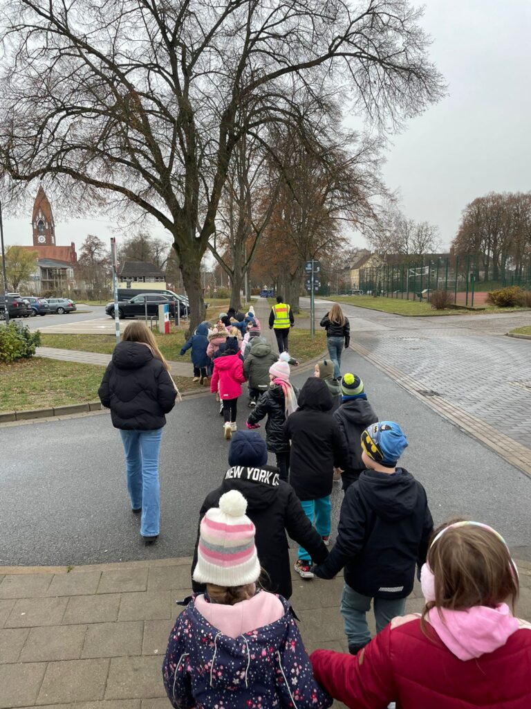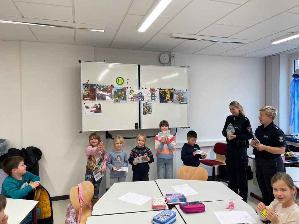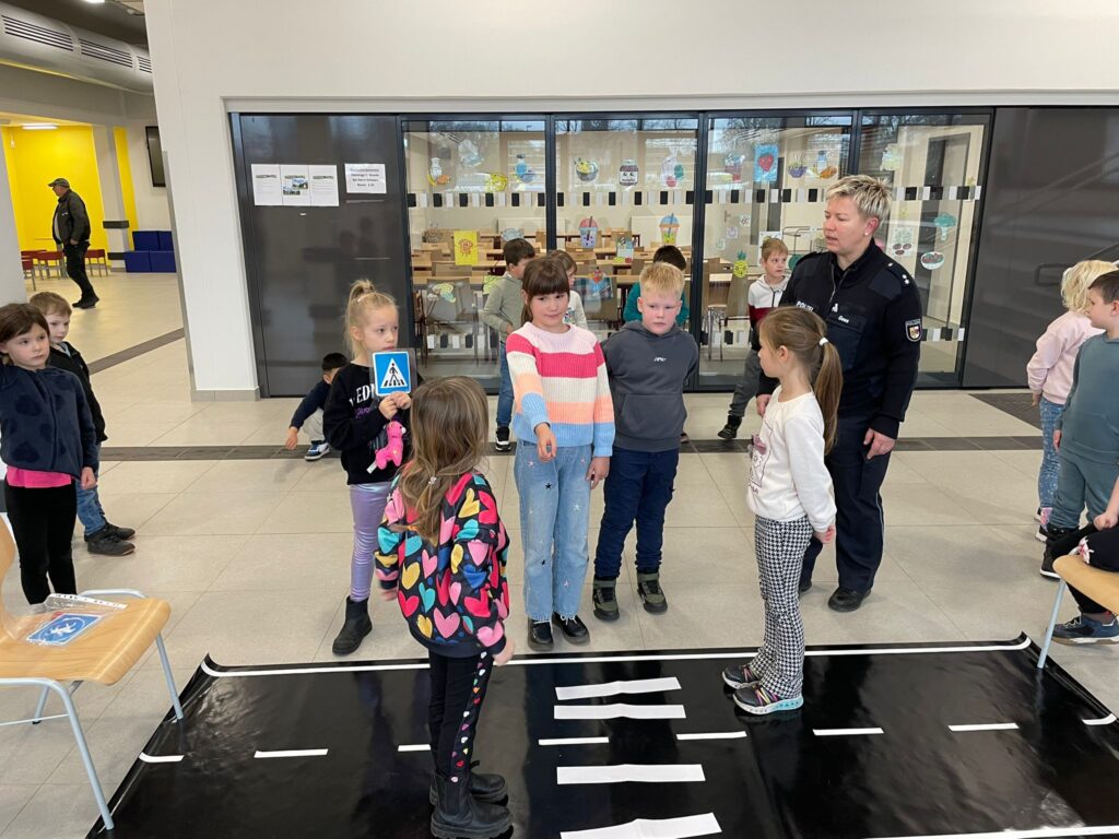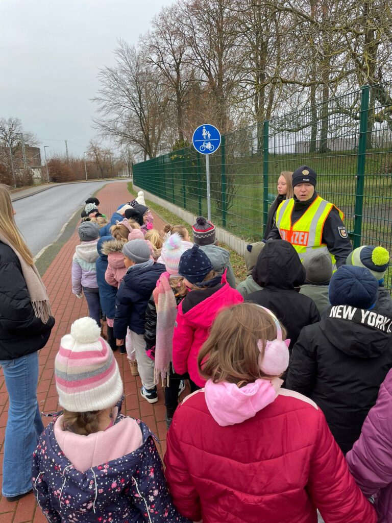 Passend zur dunklen und kalten Jahreszeit bekamen die Klassen 1a und 1b unserer Grundschule besuch von Hauptkommissarin Frau Goos aus dem Demminer Polizeihauptrevier. Begleitet von ihrer Kollegin Frau Steinführer aus der Dienststelle in Neubrandenburg und zwei Schülerpraktikantinnen von der Fritz-Reuter-Schule führten sie das Projekt „Sicherer Schulweg“ durch. Die kindgerechte Vermittlung von theoretischen Verhaltens- und Verkehrsregeln bereitete den SchülerInnen nicht nur sehr viel Spaß, sondern verhalf diesen beim erfolgreichen Bestehen ihrer praktischen Prüfung zum Füßgängerpass.